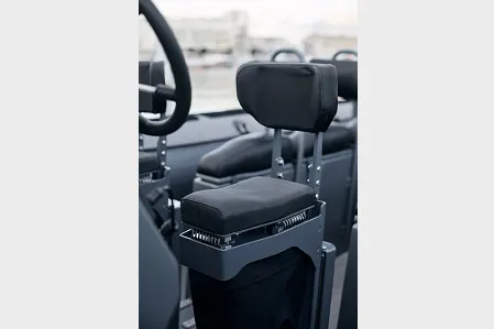 For the latest seat version, the designers at Kaj Naval used a drylin W linear guide for the spring-loaded shock absorber. It ensures that the seat glides smoothly even at high speeds and absorbs the vibrations of the shafts. Thanks to the use of tribo-polymer sliding elements, the guide carriage has no lateral clearance and shows no signs of wear even after a long period of operation.