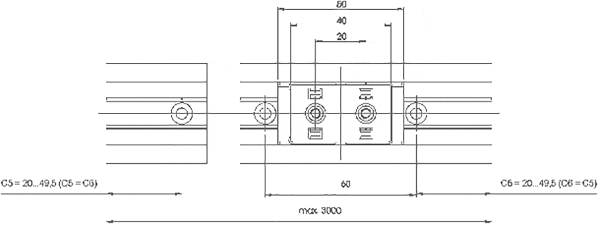| Order no. | Max. rail lengths | a | C4 | A3 | C5=C6 | h | h1 | K1* | ly | lz | Weight of rail | Price / m | ||