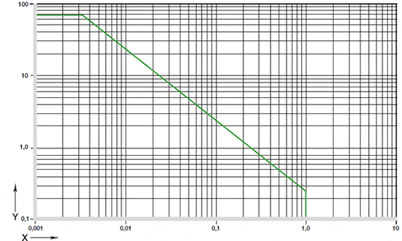 Fig. 01: Permitted PV values for iglidur® A290 plain bearings with 1 mm wall thickness in dry-running operation against a steel shaft, at +20°C, installed in a steel housing