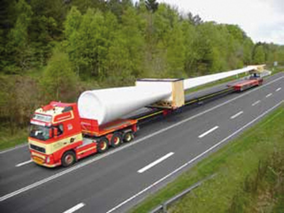 This vehicle was especially designed for the transport of windcraft wings. The platform semitrailer can be extended to an entire length of 62 metres. This allows the transport of even extremely long wings. To ensure safe unrolling of electric, brake and hydraulic cables in the inner tubes, the emphasis is put on e-chains® of the series E4.1 from igus®. Its construction principle of the so-called rear grip ensures very high stability.